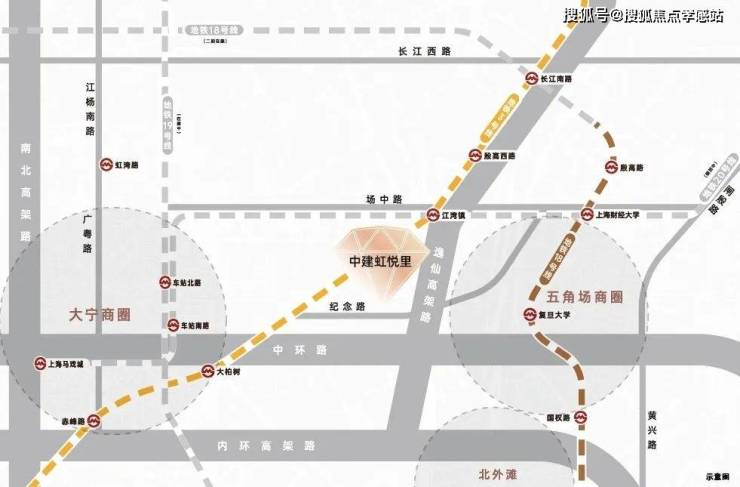 轨交配套:⛈✨中建虹悦里售楼处☎☎:400-8787-740✨直线距离3号线大柏树站约750米,直线距离江湾镇站均约900米,步行可及。3号线也是多年才出一个轨交房。畅联中山公园/延安西路;三重高架:临近中环高架/逸仙高架及大柏树立交,迅捷衔接五角场/大宁等地;干道交通:周边汇聚逸仙路/汶水路/中山北路等城市主干道,便捷抵达全城。