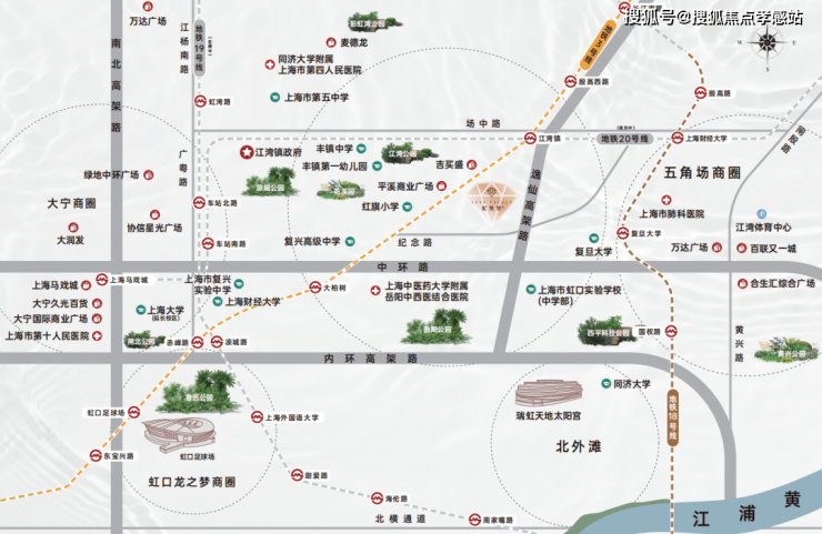 根据虹口2035规划,将构筑“一核三片两轴一环”发展格局,提升城区能级和核心竞争力,实现“人文虹口,魅力之城”的总目标。(信息来源:虹口区规划和自然资源局)本案距中环直线距离仅约600米,优享区域发展优势与内中环利好辐射,以高品质住区匹配城市发展潮向。