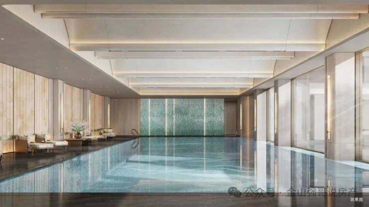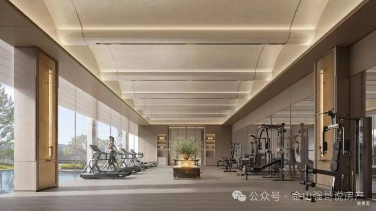 产品设计上处处彰显细节:叠墅做到上下分层的独立空间,一楼带庭院,二楼享露台,6.8米挑高客厅搭配全景落地窗,将湖景与园景引入室内;联排则打造“前庭后院”的私密格局,270度环幕视野无遮挡,预留的电梯井可满足多代同堂需求。社区内更规划约1700㎡星级会所,涵盖恒温泳池、私宴厅、健身空间等,为业主提供专属社交场域。