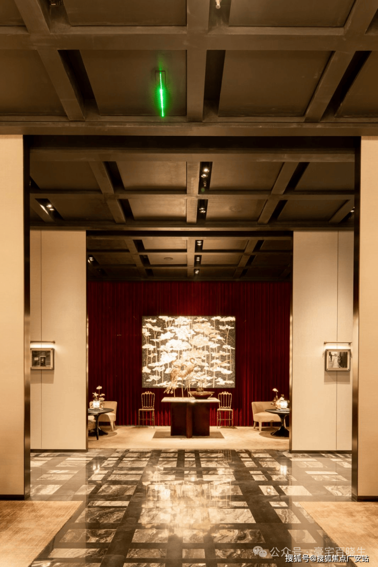 l又如拾玖间地下会所水吧背景墙的景德镇冰裂瓷,近千度窑火烧制,诉说时间的答案;会所中大量软包皮革,采用雕花皮革纹,道道工序,样样精心,结合当代摩登美学,营造值得经久回味的本色。