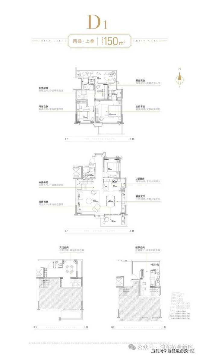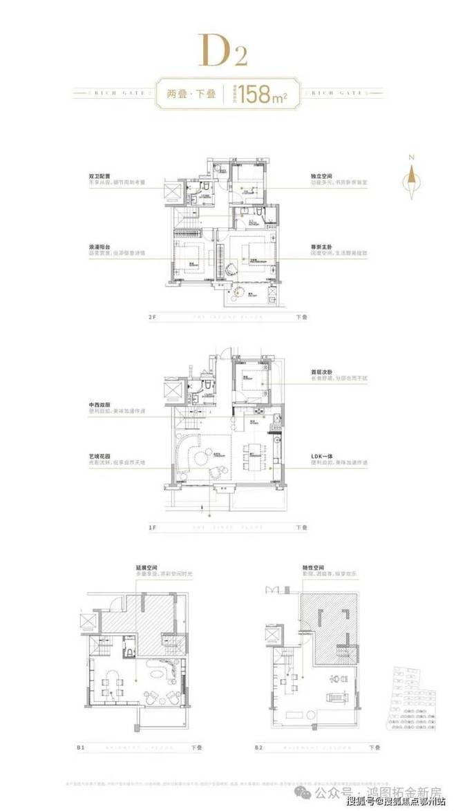 推售建面约150㎡上叠/158㎡下叠