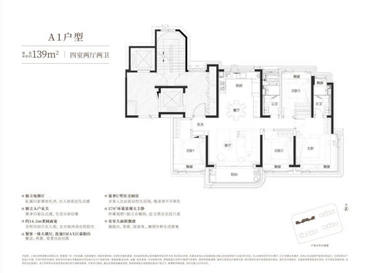 建面约 139 ㎡稀贵 4房,总价 约 1000万级 起