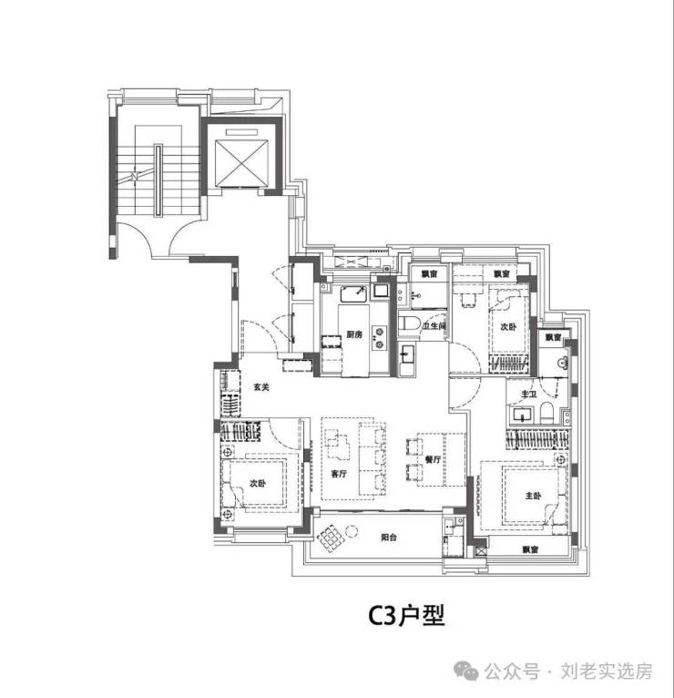 尤其你看项目建面约102㎡的C3户型,格局上超越了传统意义的三开间朝南,客厅面宽高达约5米外接差不多尺度的阳台,真正实现3.5开间,让业主起居之间沐浴更多阳光的同时,公区尺度感也直逼其他项目建面约100-120㎡户型。