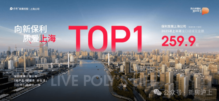 2025上半年度保利上海发展公司斩获259.9亿成交金额,冠冕上海Top1江湖地位。这份成绩单背后,是保利发展与上海的韬略共进。(数据来源:中指院)