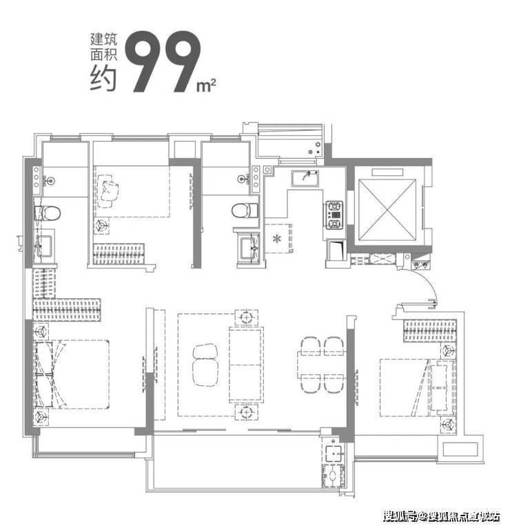 建面约99㎡3房2厅2卫