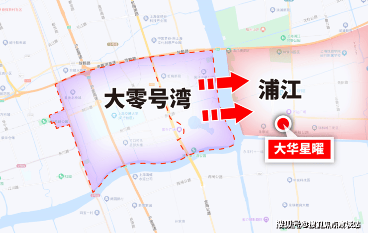 而同为闵行、同为三河交汇地区的浦江、目前联动价仅约4.3万/㎡的大华星曜就是千亿产业区大零号湾外溢的首选。