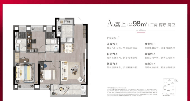 主推建面约88-98㎡3房,过会均价为33340元/㎡!