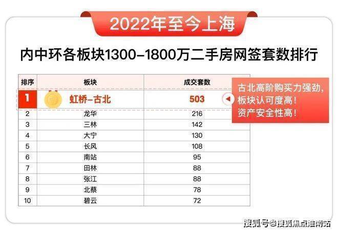 从二手房次新市场看,2022年至今,内中环1300-1800万价格段成交更活跃的板块当属古北-虹桥,市场认可度与购买力双高。