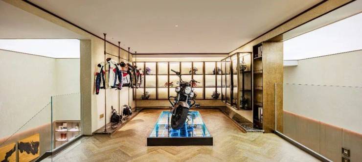 男士主题空间,两侧挑空,形成丰富的层次变化。炫酷机车、骑手服、头盔和迷你模型,是对速度与激情的致敬,每一件收藏都诉说着主人的爱好与冒险精神,营造出一个充满男性魅力的私人领地。