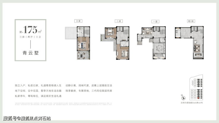 如果你对居住品质有更高的追求,148-175㎡的合院别墅绝对是不二之选,总价400-900万元,单价29000元/㎡起.围合式的合院设计,实现独立入户,让你拥有专属的归家仪式感.三重院落设计,有天有地有花园,你可以在庭院里种上喜欢的花草,打造属于自己的小天地.人车分流的设计,保障了社区内的安全与宁静;高窗墙比使得每一扇窗都能欣赏到优美的景色,采光通风效果极佳,让房间时刻保持明亮通透.