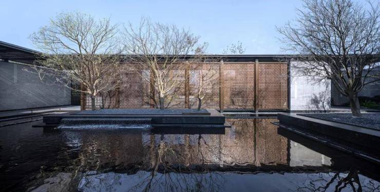地上入户大堂采用中式经典构图方法——框景,打造未进门,先见景的效果。中国人一直讲究,生活中处处有景。框景的工艺就是能做到从任何一个框望过去都是景色,角度不同景色也不同,一步一景的效果。