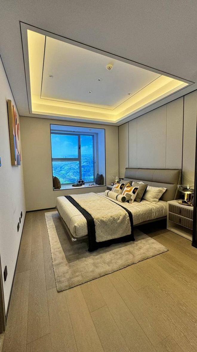 媲美星级酒店的转角套房主卧,既保证了私密性又不失奢华感。更有IMAX级宽景明窗,拥享整座城市景观。