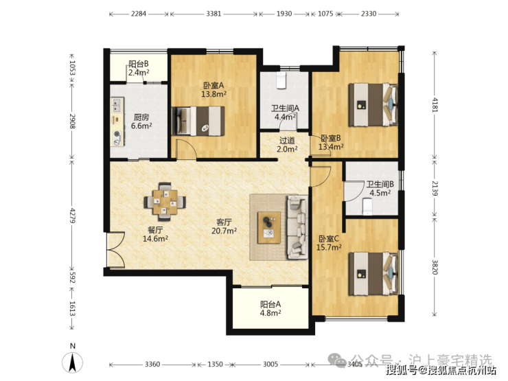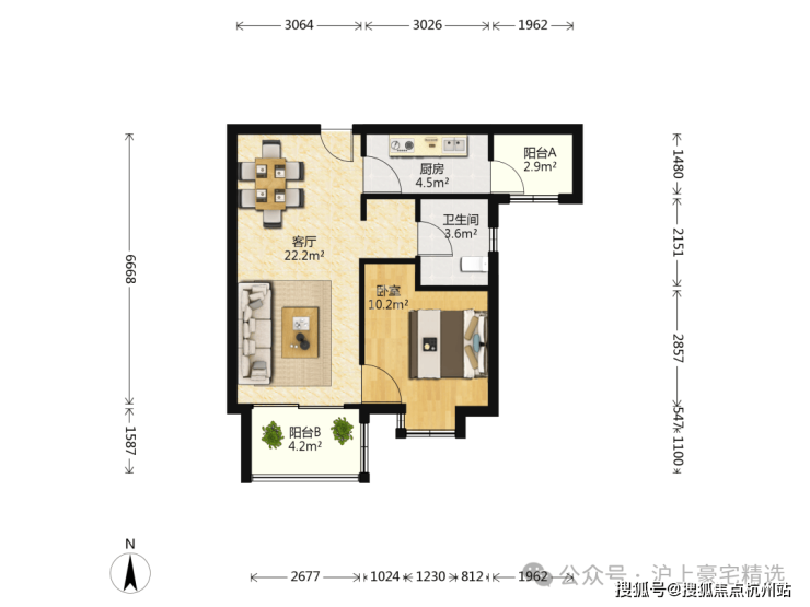 项目由三栋高层加一栋小高层建筑组成。作为苏河湾板块内次新房,以小户型为主,主要是88m²的精致2房以及102m²的灵动小3房,另外还配有66m²1房和141m²3房等多种户型。
