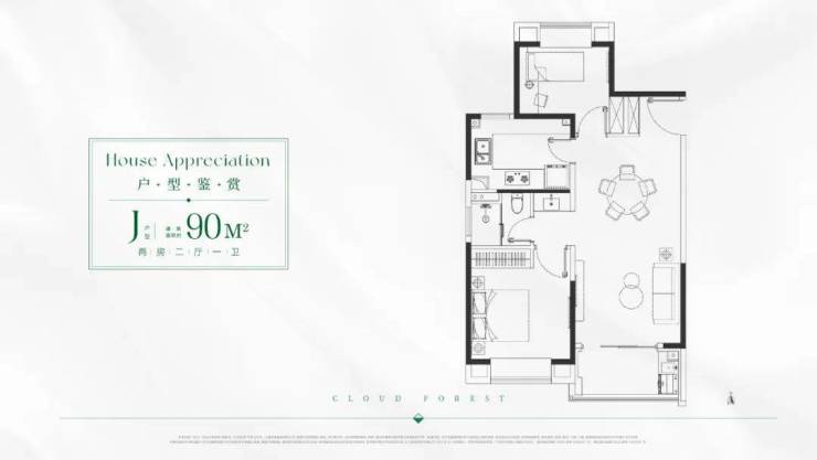 J/K户型 建面约90㎡2房