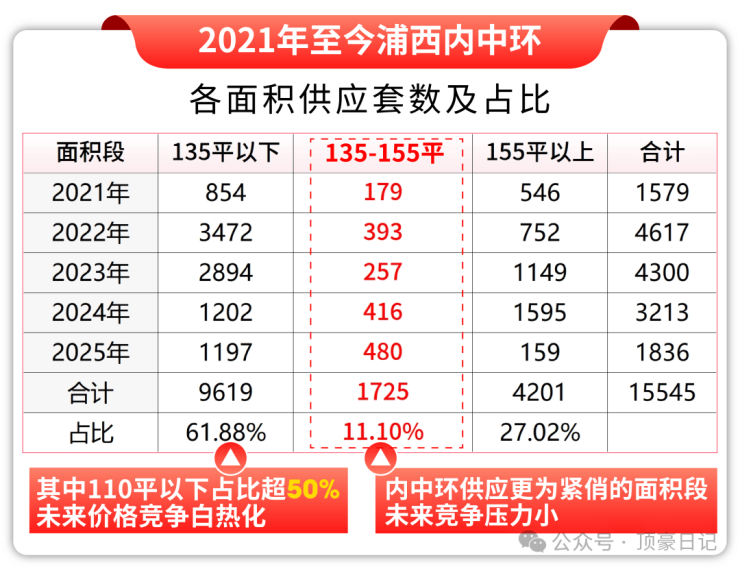 2021年至今,内中环约135-155㎡户型供应仅占比约11%。