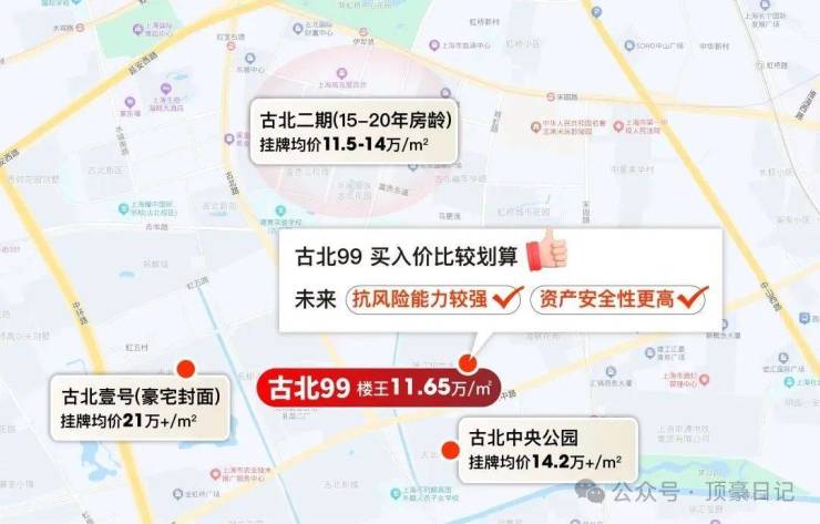 约13.5万/㎡只是暂时的,关键在于,内中环地王扎堆,还未正式启动,比如中建大宁、宸嘉龙华等“超级地王”蓄势待发, 预计售价16-18万/㎡。🔵古北99售楼处电话☎:400-8787-740【售楼处已认证】⚡⚡