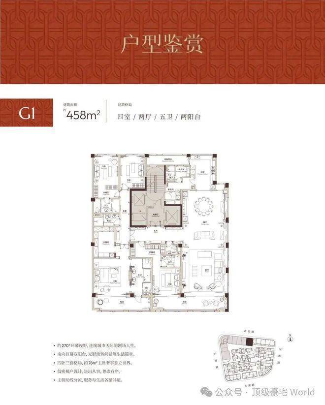 南北通透,五开间朝南,中轴格局,270°环幕采光尽揽风景。