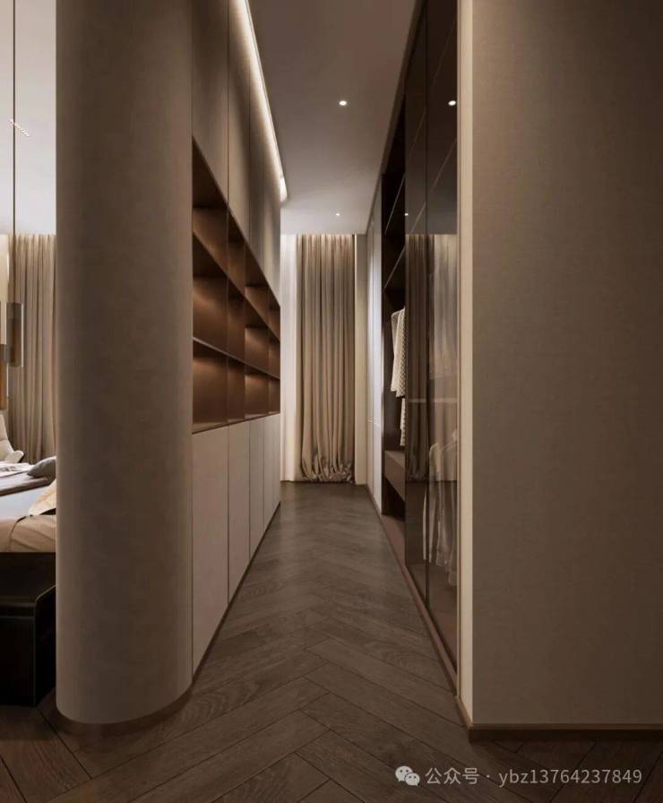 • 整墙玻璃衣帽间(爱马仕专属格位),收纳品味与锋芒。