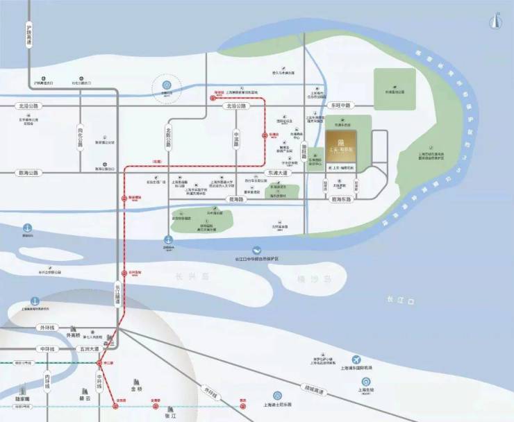 交通配套方面:申崇一线、申崇二线、轨道交通崇明线——东滩站(在建)。