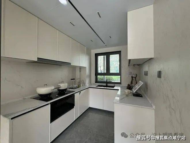 再来看下厨房配置。U型厨房,预留了大约1米宽的双开门冰箱位置,厨电采用方太四件套——烟机、灶具、蒸烤一体机、洗碗机。其中洗碗机,轻扣门板可自动开门的新款!招商中旅·观境预约热线☎:400-8080-420✅✅
