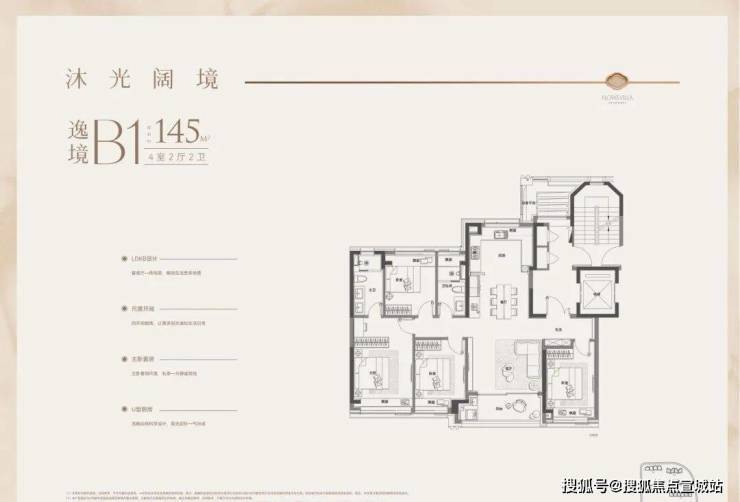 户型特点:4开间朝南,LDK一体化设计,南北通透。客厅面宽达4.3米,外接4.8米长阳台,采光通风俱佳。主卧带270°转角飘窗,主卫也有飘窗赠送。全屋飘窗设计,独立电梯厅,私密性与尊享感强。
