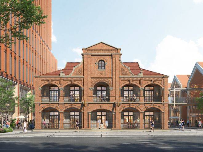 约3万方风貌商业,以福禄街为商业主轴,通过“一街三馆”的规划,对红线范围内留存的4栋百年文保建筑进行精心修复与功能重塑,编织进未来摩登共生体中,打造富有精致烟火气的都市人文特色商街,实现历史建筑与当代生活的自然融合。