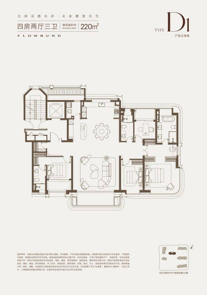 建面约220㎡产品位于整个社区的楼王位置,南北毫无遮挡,坐拥一线江景+社区中央核心景观带,视野拉满。