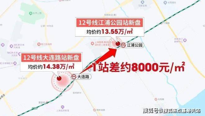 环顾上海内中环,12大连路新房均价14.38万/㎡,相隔一站的江浦公园站新房13.55万/㎡,差价约8000元/㎡。