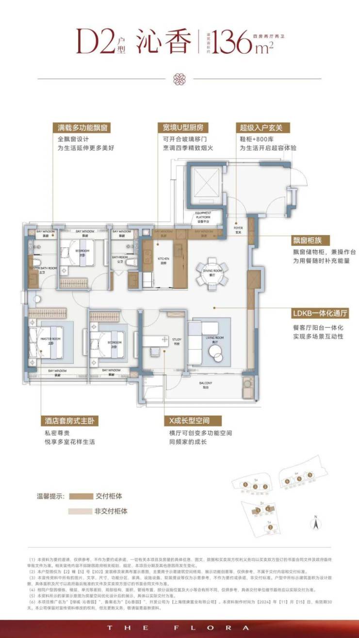 整个户型一共有7个飘窗1个横跨次卧灵动空间+客厅的超大宽面阳台,整个户型的尺度感、视野、通风度极为出众。