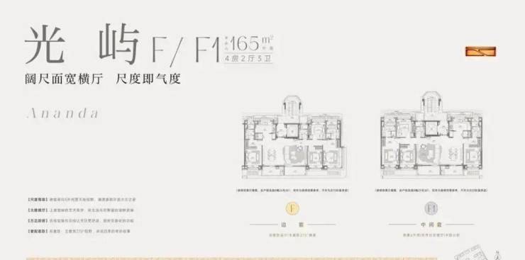 建面约165㎡中叠预计使用率最高约95%、罕见5面宽、尊享通透双套房,最大18.4米南向面宽(非得房率,最终房屋得房率以实测报告为准)