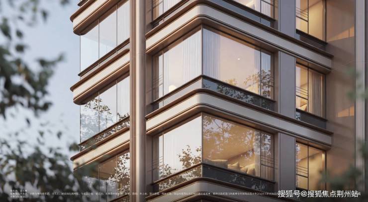 采用大面积铝板+玻璃幕墙+石材立面,鎏金塔冠、微弧工艺,筑造历久弥新的滨江恒产底气。