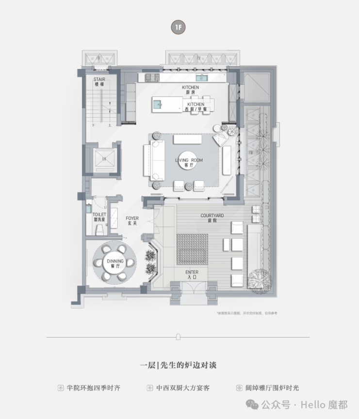 一层长辈套房设计,南向独立小庭院,莳花弄草,晨练太极自在四季