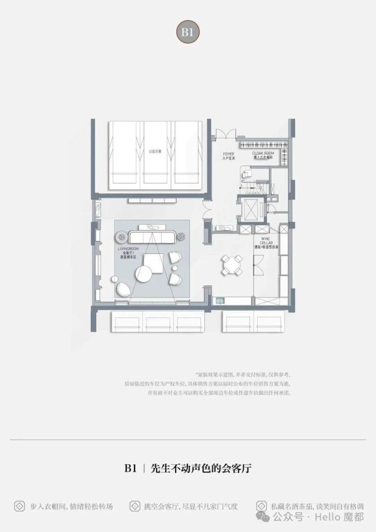 从容抵达步入地下会客厅,转角衣帽间换一身便服,轻松切换身份情绪