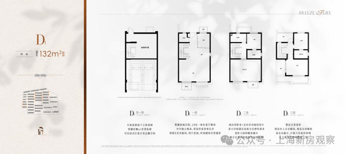 建面约132㎡的D1户型(联排)。乍一看,这是一个地下一层,地上三层的标准联排户型,从户型图上只能看到两个卧室。但仔细看的话,会发现许多令人惊喜的亮点~