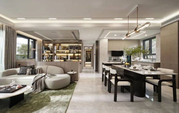 130㎡大户型,我们能看到创新设计的X百变空间,链接家人情感的同时,更强调提供丰盛多变的生活方式。在这里,居住者可以将其打造为书房/琴房室,为自己带来放松身心的私享空间。同时,也可以将其拓展,打造成超大面宽的超级会客厅,尽可能延伸出更大的社交场地。
