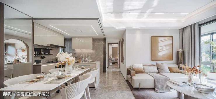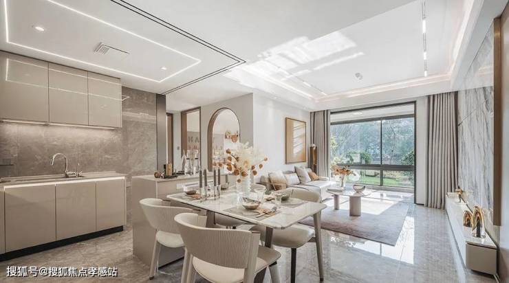 以星级酒店入口礼仪为营建标准,精贵米白色石材与金属材质雅致缝合,现代国际简约美学、与温馨人居气质共生。