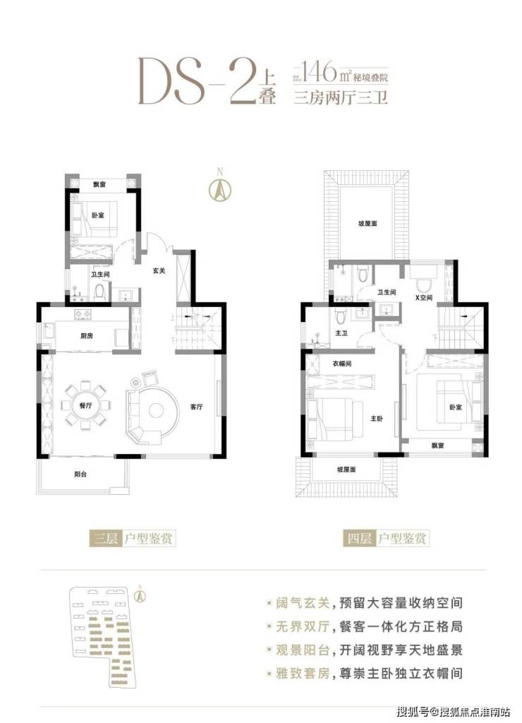 约146平三房上叠,同样拥有大横厅设计,附赠约25平阁楼,独享宽景露台