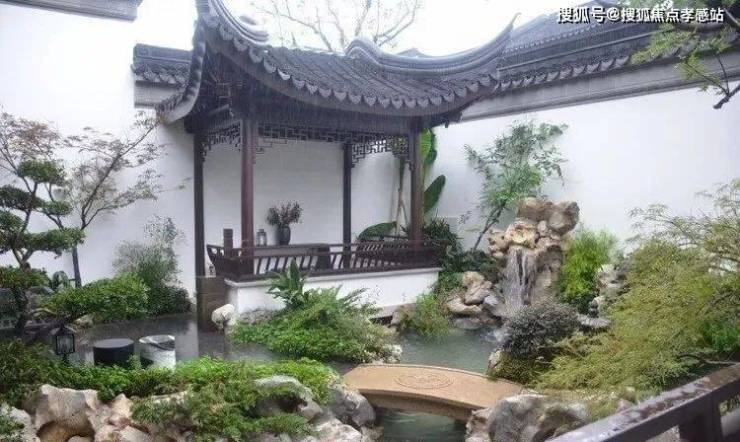 中式园林是最纯粹最理想的精神皈依之所。进入园林庭院,古朴有致,瘦漏透皱的太湖石下一方清泉涵韵其间,低头有池水如镜,抬头有瀑布如练,“水积必然龙有穴”,富贵因子已然埋藏于此。