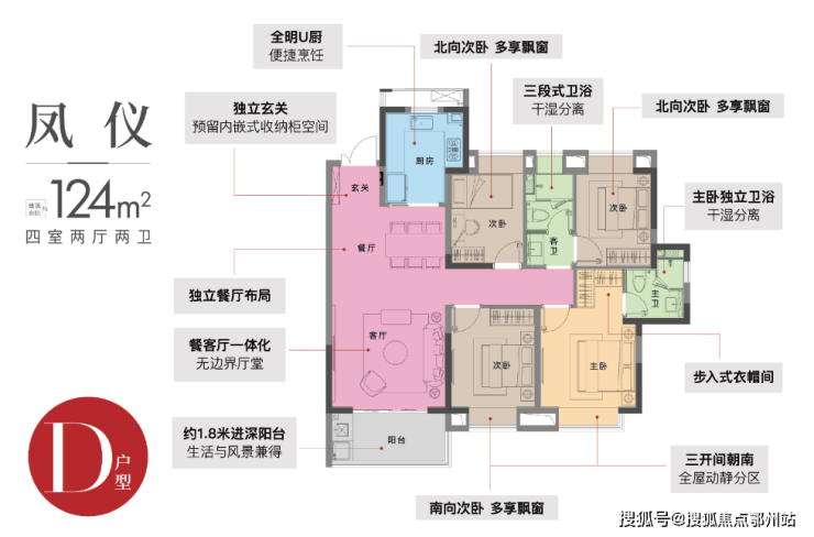 D户型 | 4室2厅2卫 | 建筑面积约124㎡