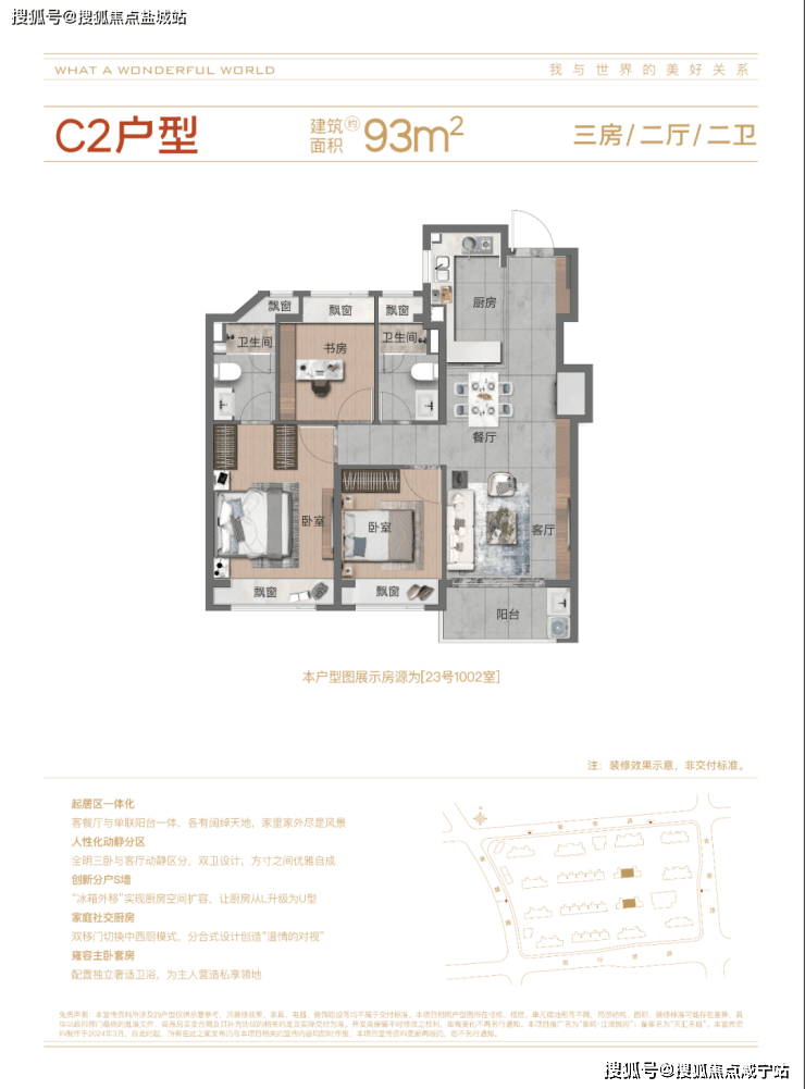 项目将推出11栋14-18F高层住宅、3栋6F叠拼别墅,产品或包含约73-93㎡2-3房、约123-138㎡叠加、约143㎡平层。