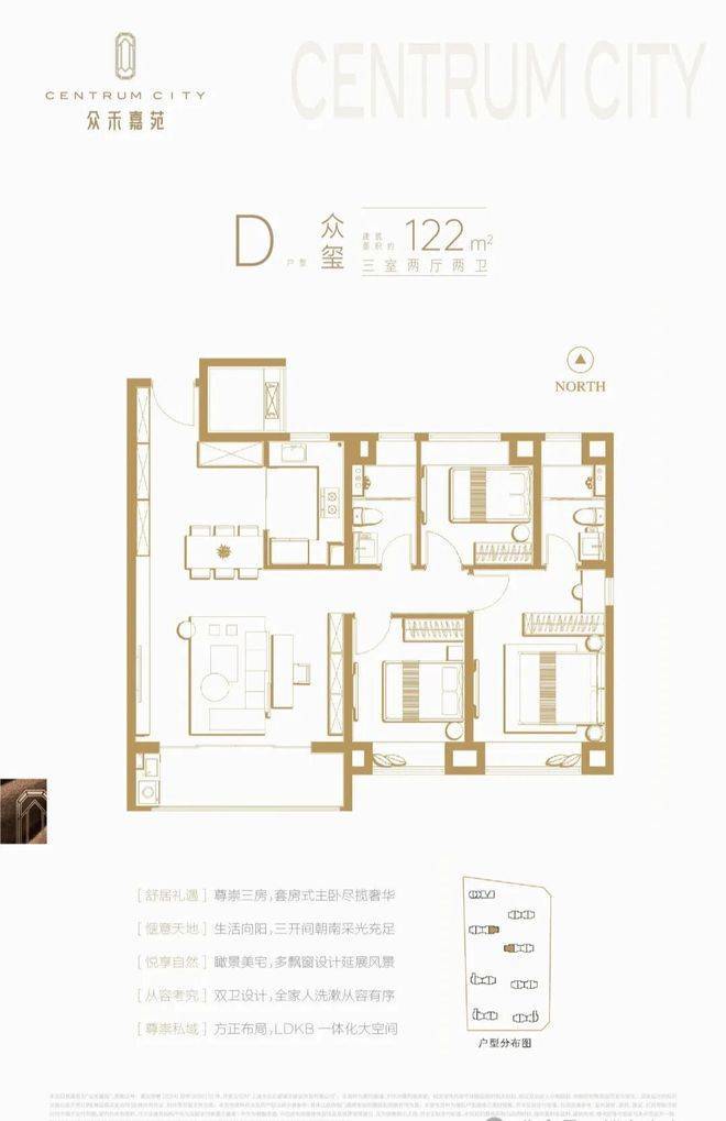 最后聊聊咱们最关心的空间。众禾嘉苑的主力面积段在94-122㎡,覆盖了三房到3+1房 。