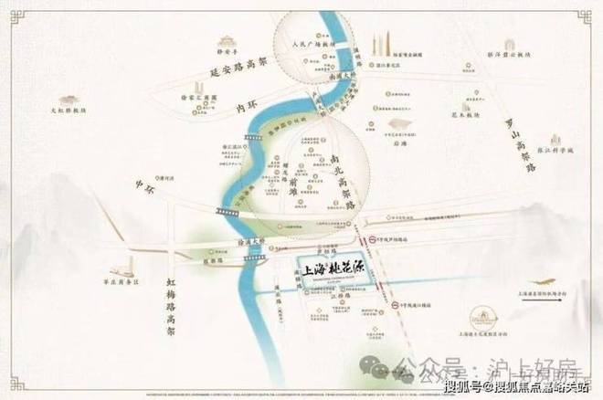 上海桃花源的择址,与传统市中心人民广场在南北中轴线上,由济阳路快速路、中环、外环以及各大隧桥快速连通市区,这是项目出则繁华的基础.