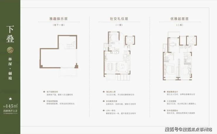 叠墅更是稀缺,上叠(122 - 134㎡)、中叠(132㎡大平层)、下叠(131 - 150㎡),配备星空露台、地下室,真正实现“有天有地”的墅居梦想。