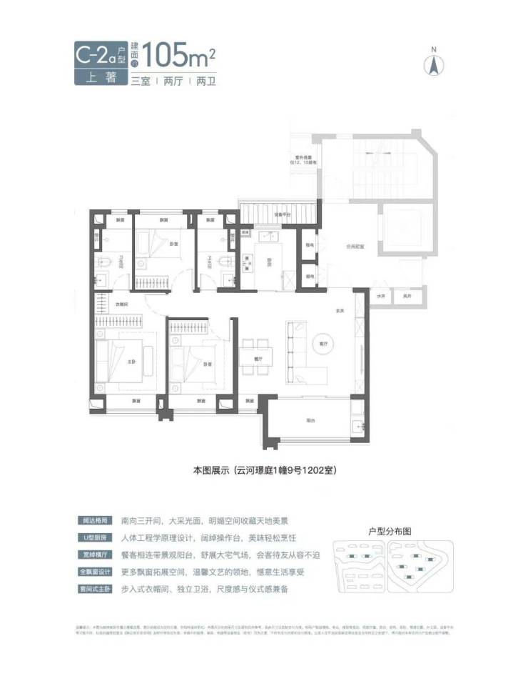 文中所示楼栋幢号均为工程编号,以实际位置为准其次是建面约105㎡3房横厅户型。⛅☀︎国贸虹桥璟上售楼处电话:400-8787-740☎☎☀︎