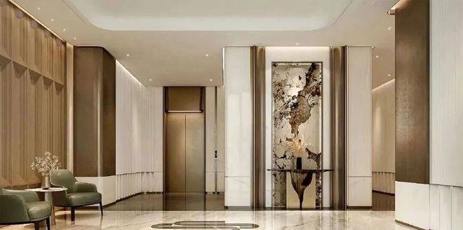 公共区域采用精装大堂,电梯厅也做了精装处理