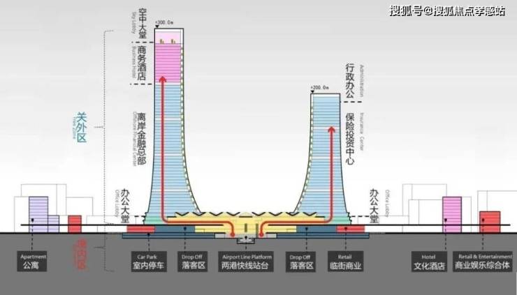 中央商务区不仅有300m临港三件套,还有全球首个实现境内关外概念的城市航站楼: