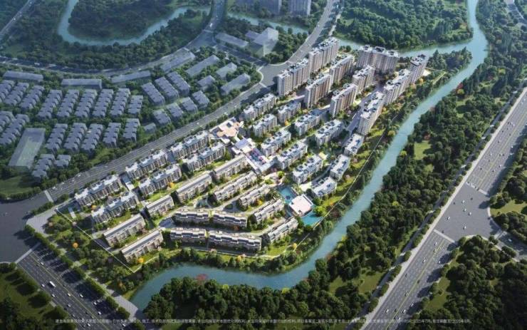 整个地块三面都被绿地与河道包裹,尤其是项目东侧,公共绿地、滨河景观带、城市生态走廊此地排列,天然具备 构建多层次景观视域的条件。
