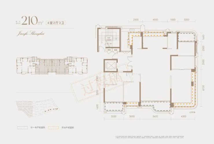 经过专业建筑师测算,该户型的客厅南向开间达到3.9米,入户门到公卫的距离足足5.35米。
