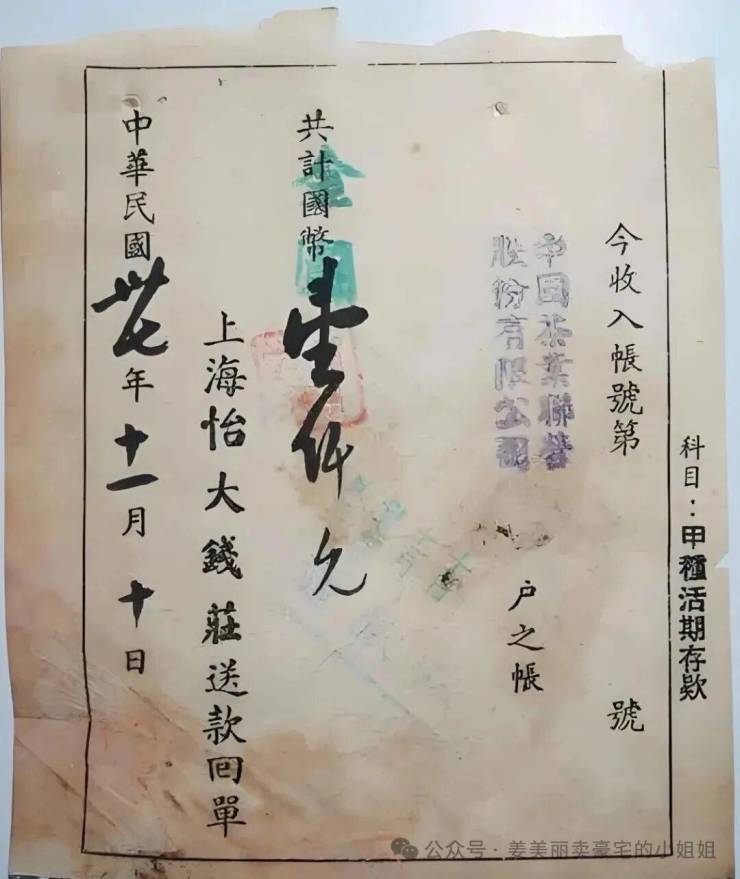 ◉怡大钱庄存款回执单 图片来自网络