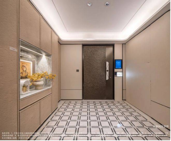 如样板间门口所示,大门旁的一整面墙可做收纳柜。
